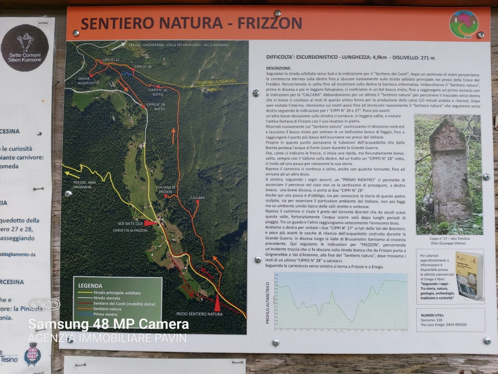 Sentieri storici, mistici, mozzafiato, delle curiosità. Immersi nella natura e pensati sia per le famiglie che per gli sportivi. Le mappe si trovano davanti a piazza San Marco antistante il caffè Fontana, altrimenti scaricando il pdf al seguente link https://www.enegonatura.it/assets/brochure.pdf (fonte sito enegonatura.it).