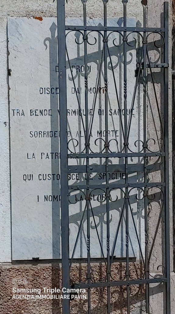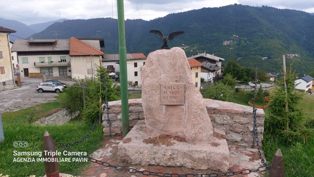 Sito in Piazza San Marco ricorda i Caduti di Guerra. Frontalmente riporta “Enego nella grande guerra estremo baluardo della Patria a perenne tributo di riconoscenza e di amore ai conterranei gloriosamente caduti eresse. MCMXXV“.